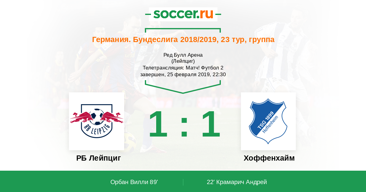 Протокол матча РБ Лейпциг против Хоффенхайм