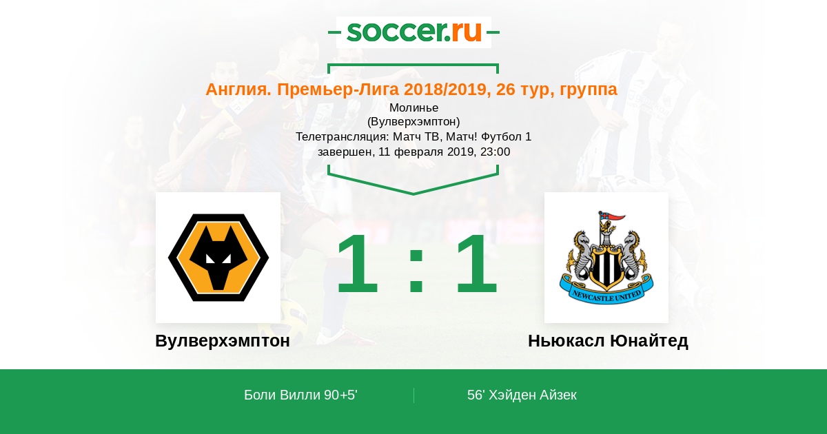 Протокол матча Вулверхэмптон против Ньюкасл Юнайтед
