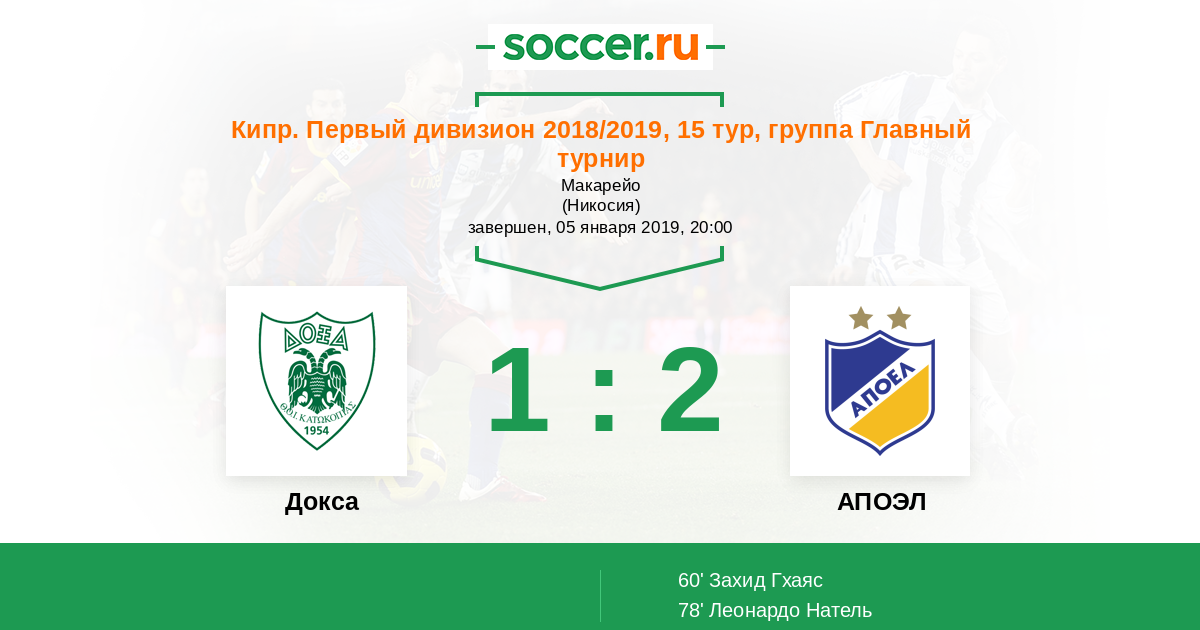 Протокол матча Докса против АПОЭЛ