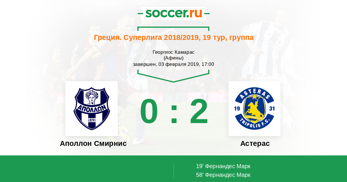 19' (0:1) Фернандес Марк (7) (Калцас Николаос (23))