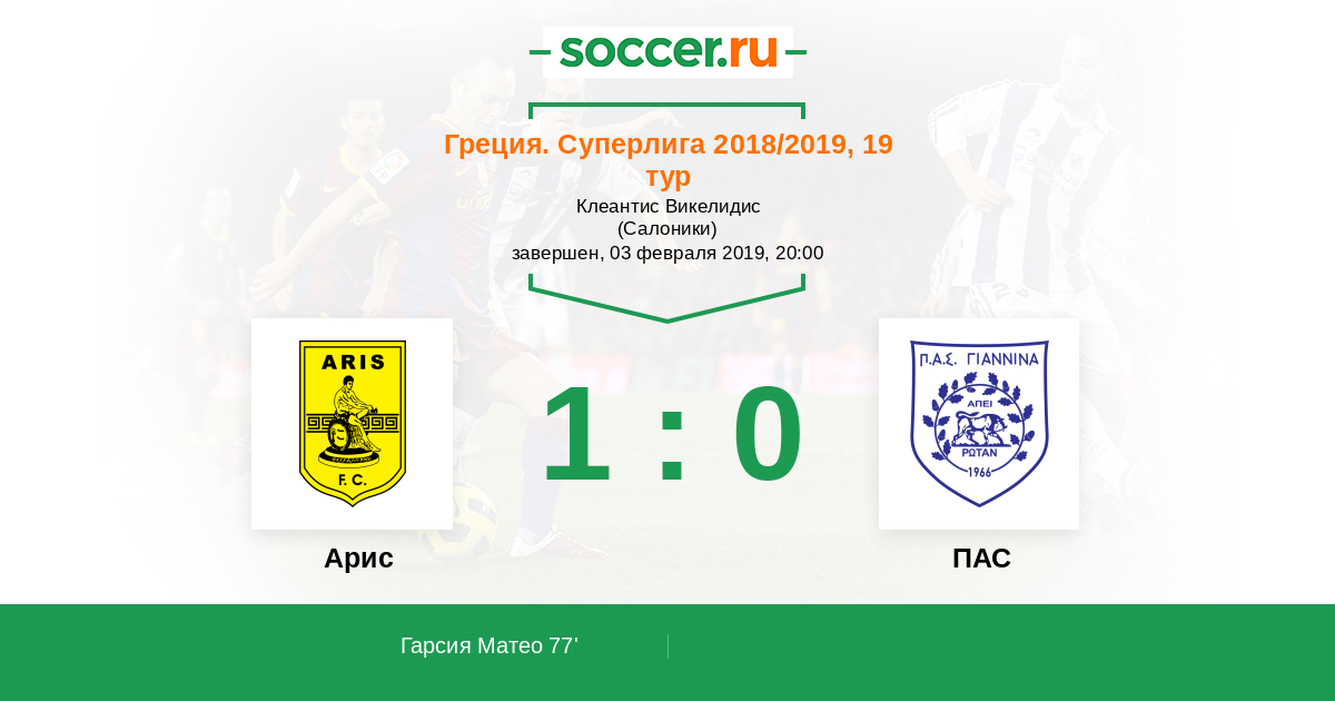 Протокол матча Арис против ПАС