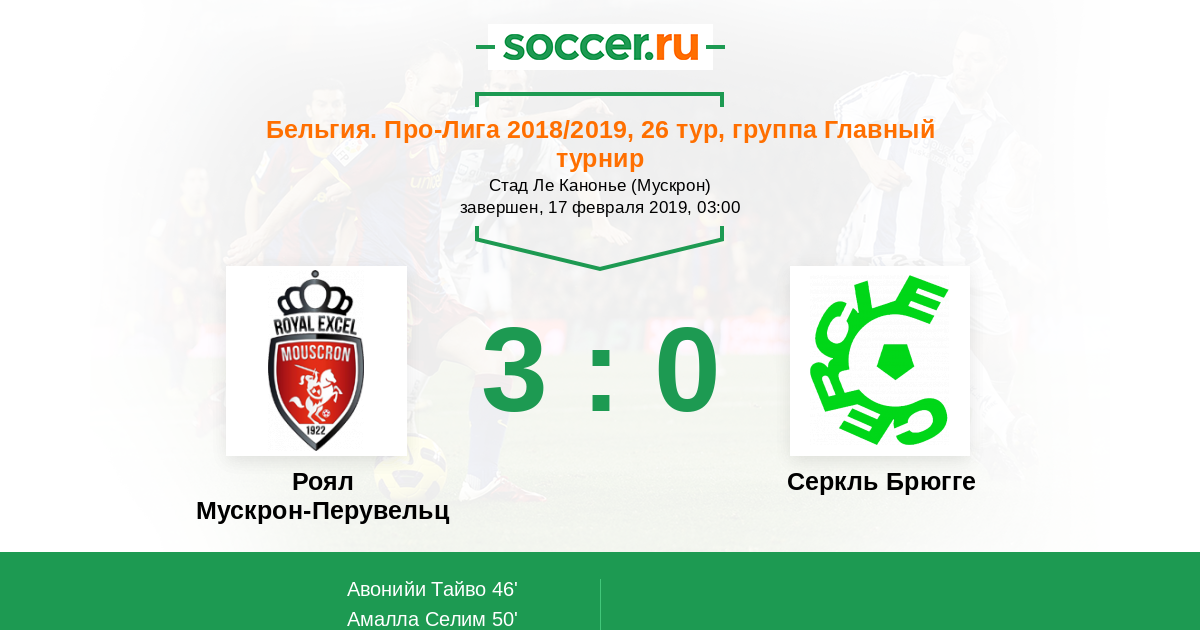 Протокол матча Роял Мускрон-Перувельц против Серкль Брюгге