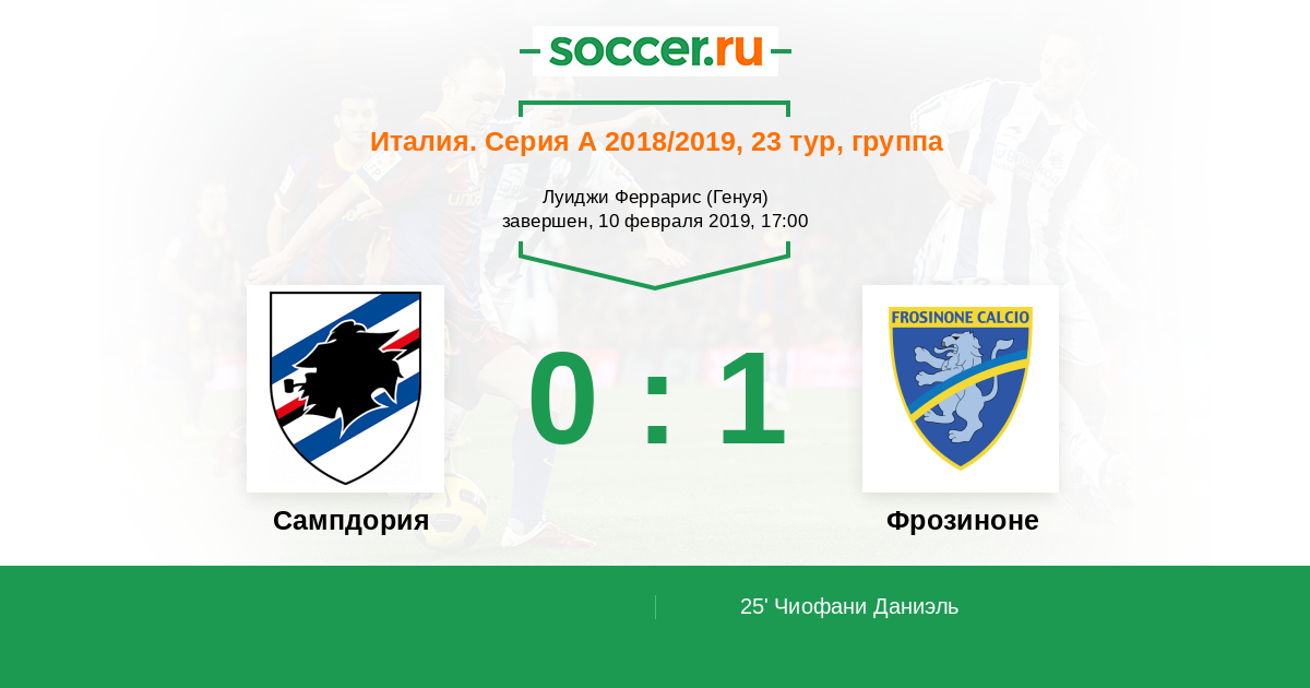 25' (0:1) Чиофани Даниэль (9) (Гольданига Эдоардо (6))