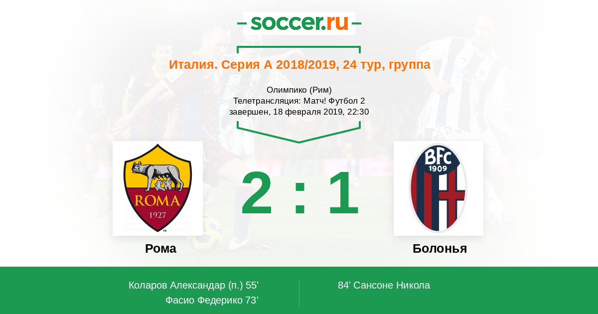 73' (2:0) Фасио Федерико (20) (Де Росси Даниэле (16))