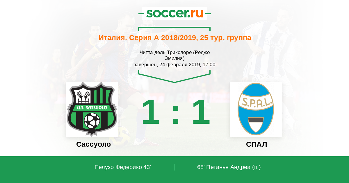 Протокол матча Сассуоло против СПАЛ