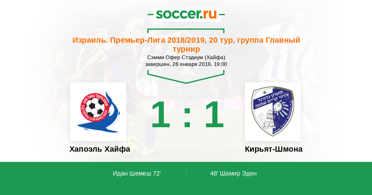 Протокол матча Хапоэль Хайфа против Кирьят-Шмона