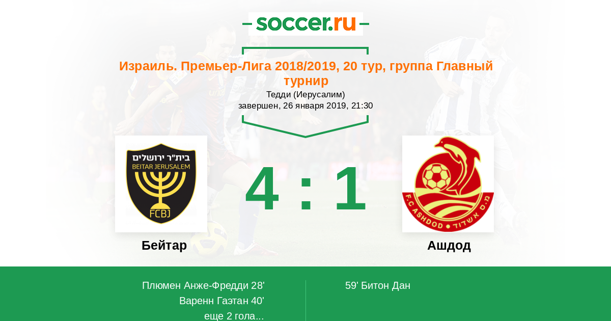 Протокол матча Бейтар против Ашдод