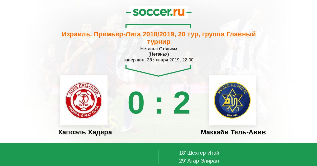 Протокол матча Хапоэль Хадера против Маккаби Тель-Авив