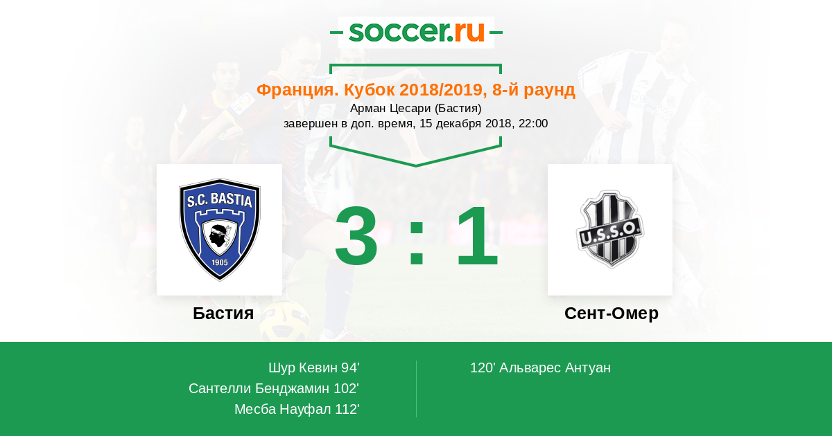 Протокол матча Бастия против Сент-Омер