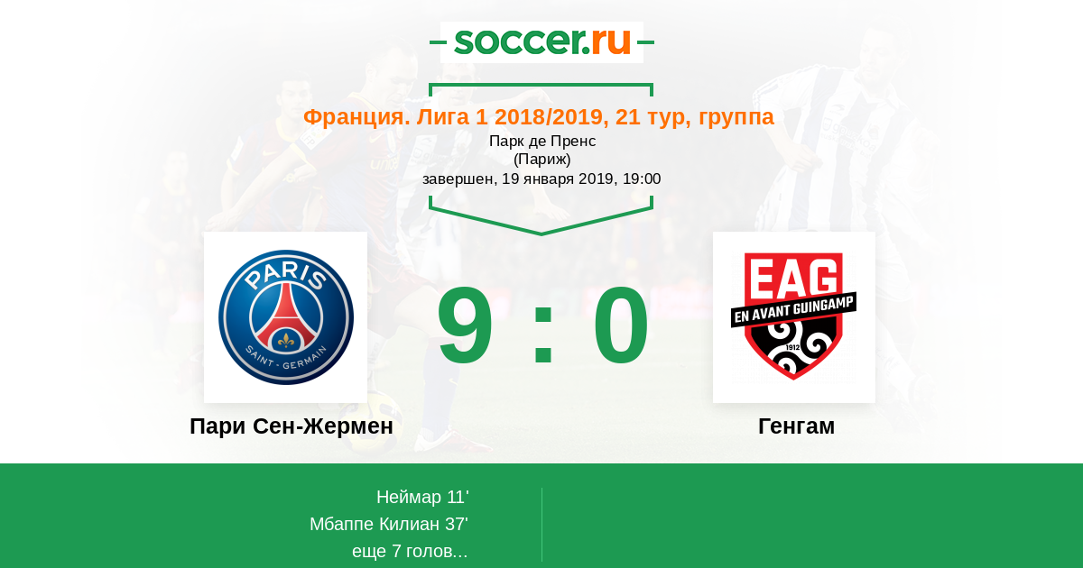 Протокол матча Пари Сен-Жермен против Генгам
