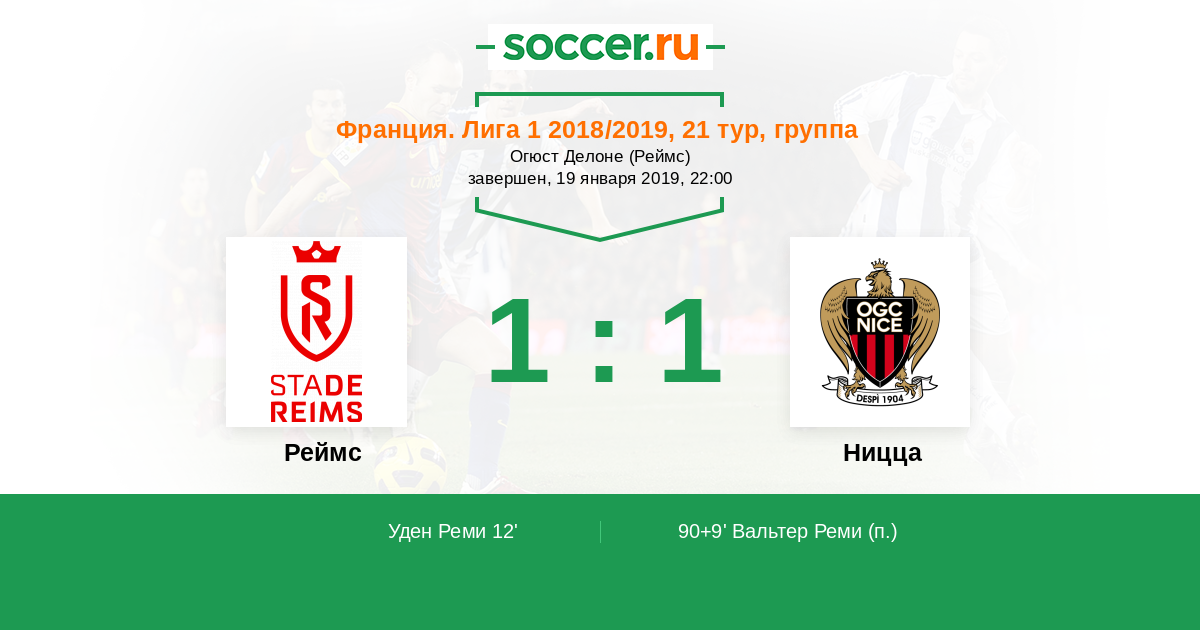 Протокол матча Реймс против Ницца