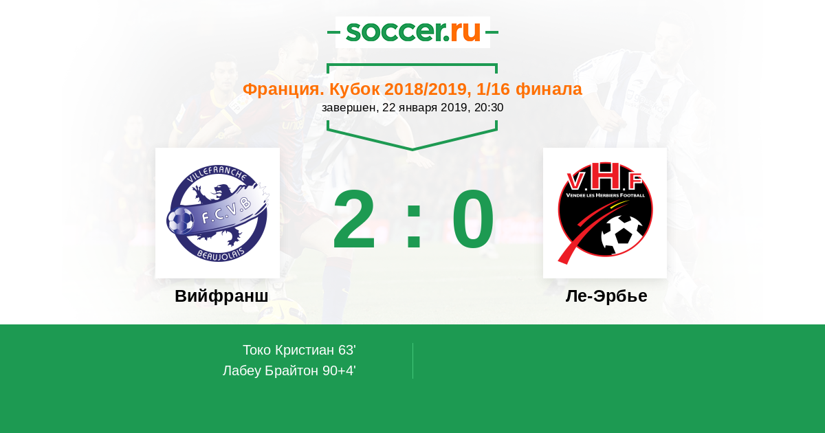 Протокол матча Вийфранш против Ле-Эрбье