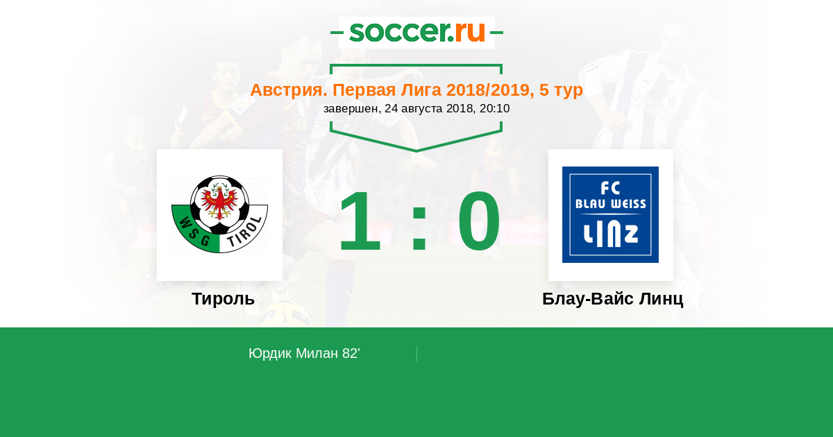 Протокол матча Тироль против Блау-Вайс Линц