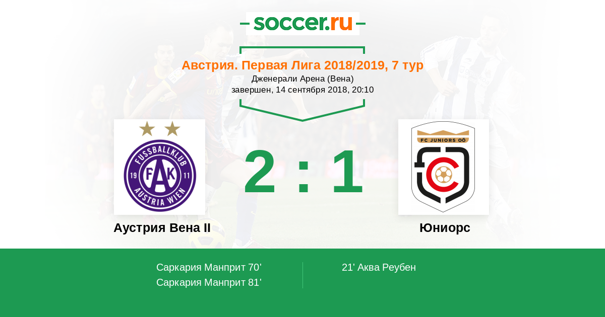 Протокол матча Аустрия Вена II против Юниорс