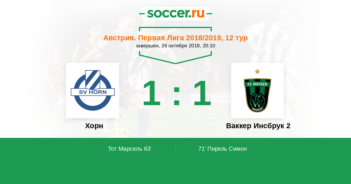 Протокол матча Хорн против Ваккер Инсбрук 2