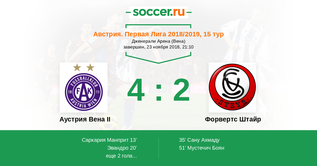 Протокол матча Аустрия Вена II против Форвертс Штайр