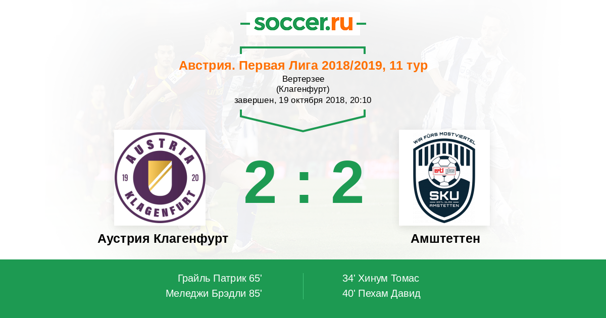 Протокол матча Аустрия Клагенфурт против Амштеттен