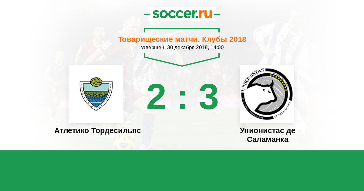 Испания. Терсера. Группа 1 21.01.2018 Унионистас де Саламанка Логотип футбольный клуб Унионистас де Саламанка 1:2 Логотип футбольный клуб Атлетико Тордесильяс Атлетико Тордесильяс