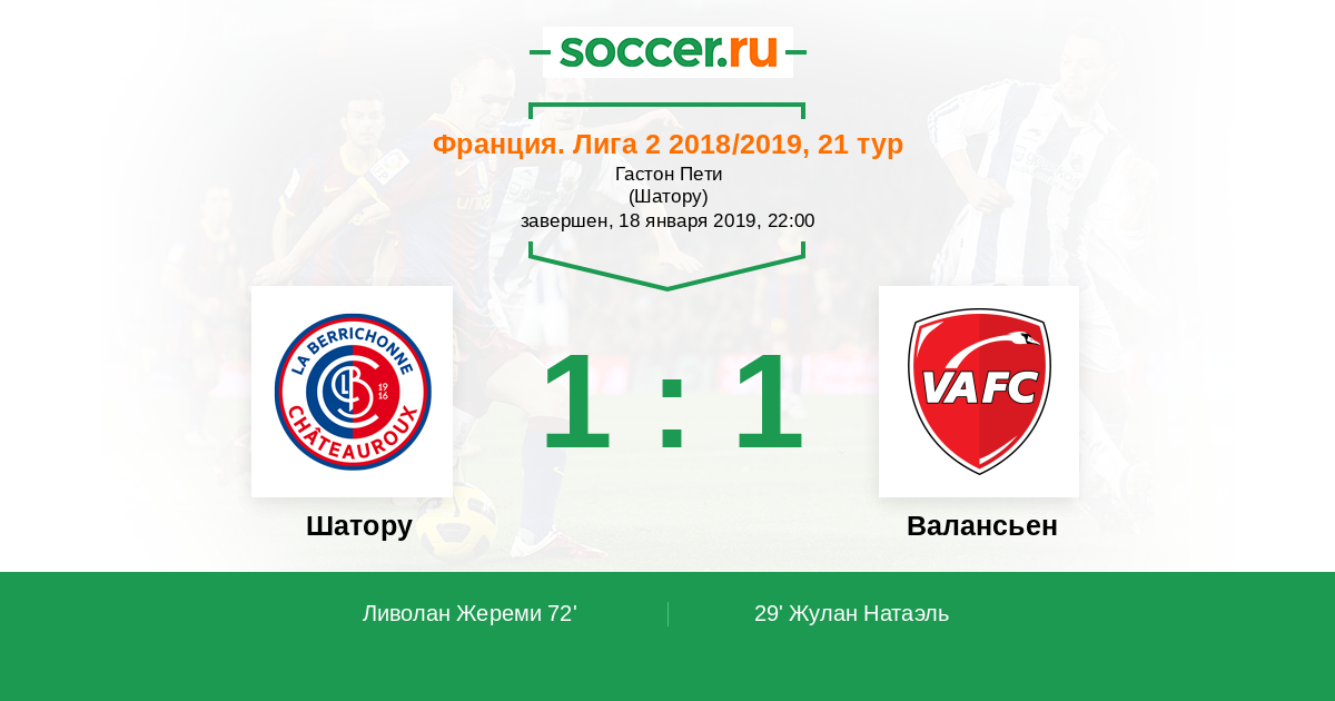 Протокол матча Шатору против Валансьен