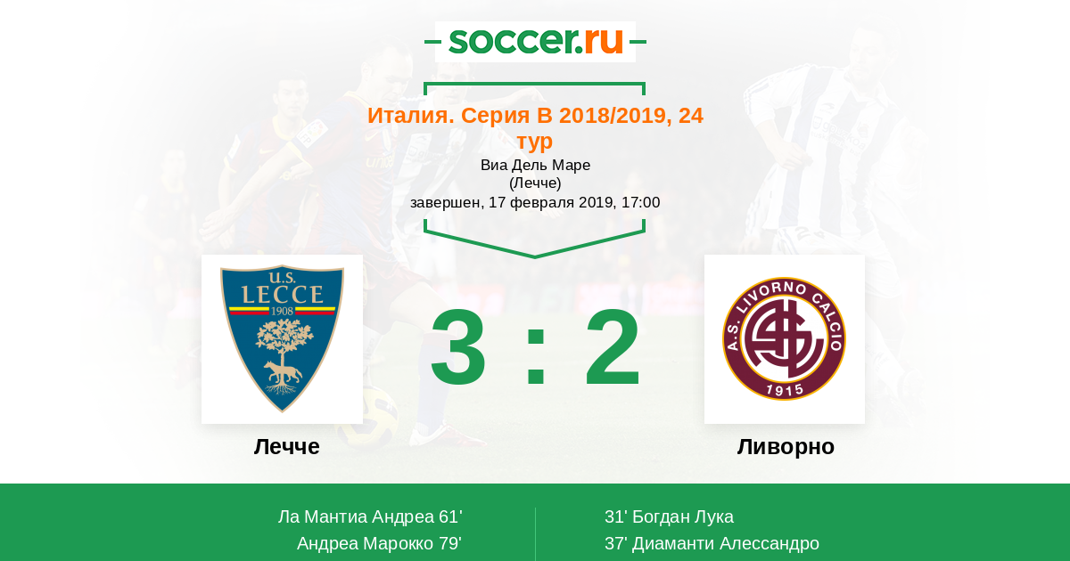 61' (1:2) Ла Мантиа Андреа (19) (Андреа Марокко (6))