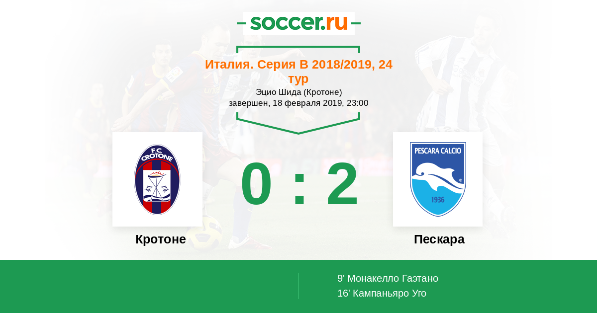 9' (0:1) Монакелло Гаэтано (9) (Манкузо Леонардо (7))