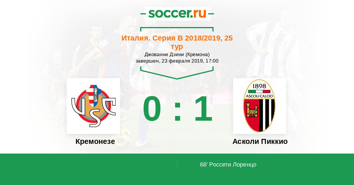 Протокол матча Кремонезе против Асколи Пиккио