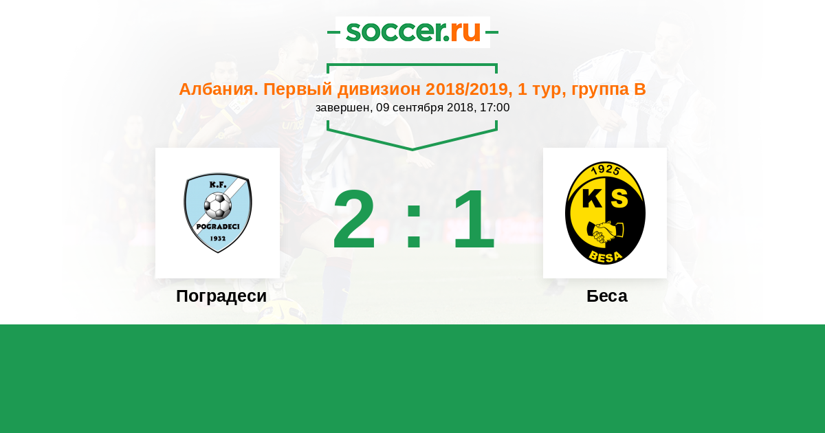 Албания. Первый дивизион 25.11.2018 Беса Логотип футбольный клуб Беса (Кавайе) 1:1 Логотип футбольный клуб Поградеси Поградеси