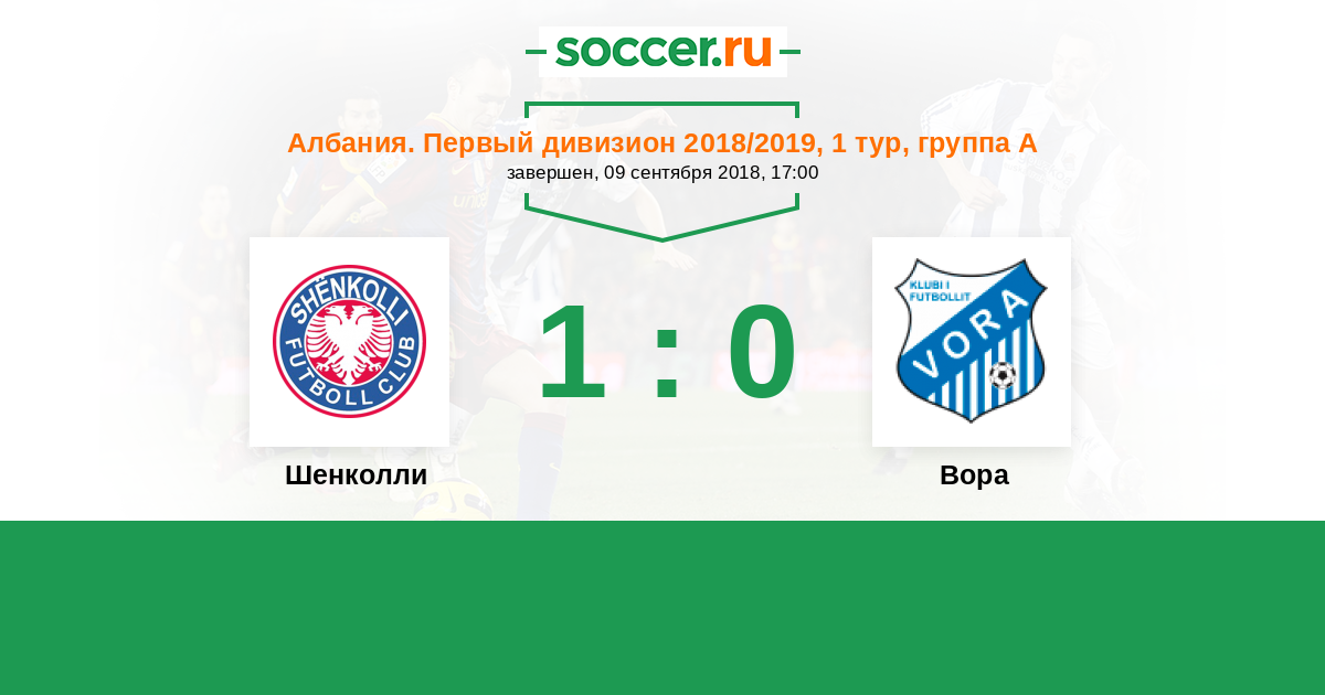 Албания. Первый дивизион 24.11.2018 Вора Логотип футбольный клуб Вора 1:0 Логотип футбольный клуб Шенколли (Леже) Шенколли