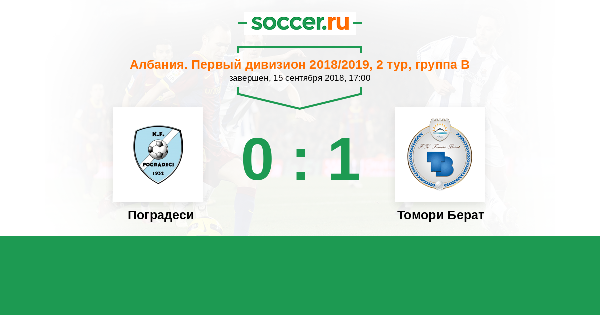 Албания. Первый дивизион 01.12.2018 Томори Берат Логотип футбольный клуб Томори Берат 1:0 Логотип футбольный клуб Поградеси Поградеси