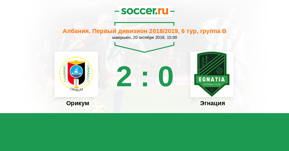 Албания. Первый дивизион 20.10.2019 Люшня Логотип футбольный клуб Люшня 2:0 Логотип футбольный клуб Орикум Орикум