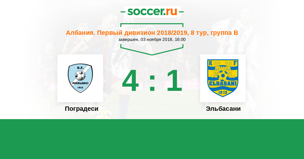 Албания. Первый дивизион 20.10.2019 Эльбасани   2:3 Логотип футбольный клуб Поградеси Поградеси