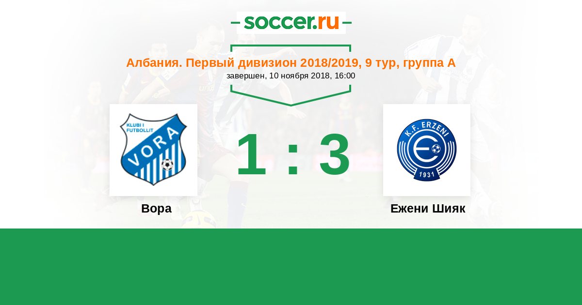 Албания. Второй дивизион: Группа А 22.09.2013 Эрзени Шияк Логотип футбольный клуб Эрзени Шияк 0:1 Логотип футбольный клуб Вора Вора