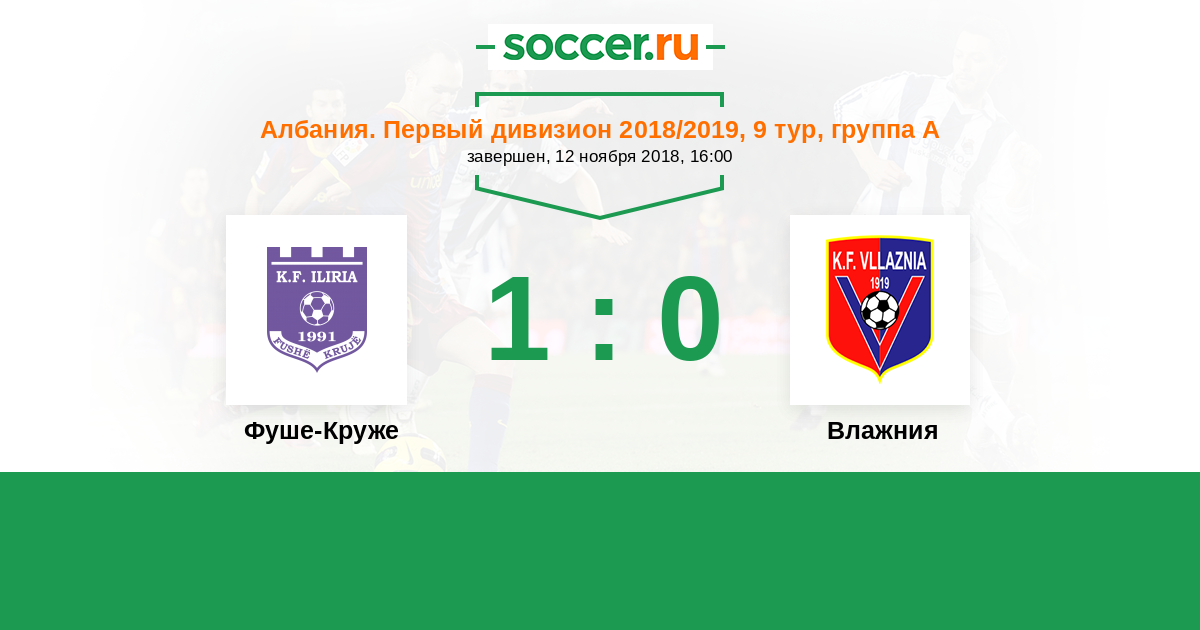 Албания. Первый дивизион 23.02.2019 Влажния Логотип футбольный клуб Влажния (Шкодер) 2:0 Логотип футбольный клуб Фуше-Круже Фуше-Круже