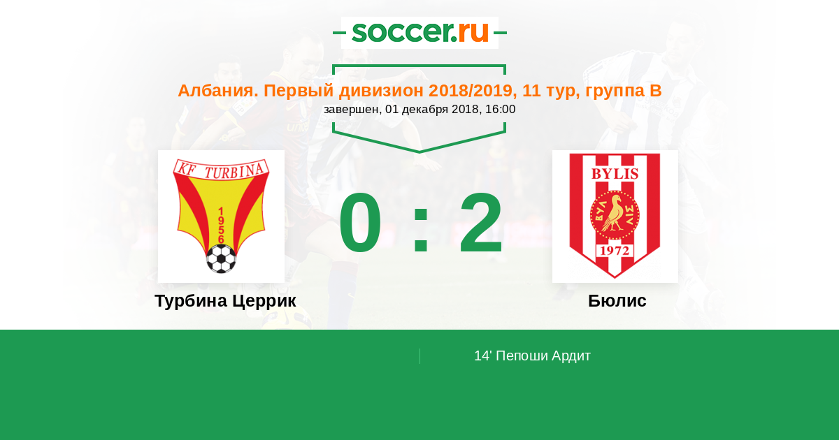 Протокол матча Турбина Церрик против Бюлис