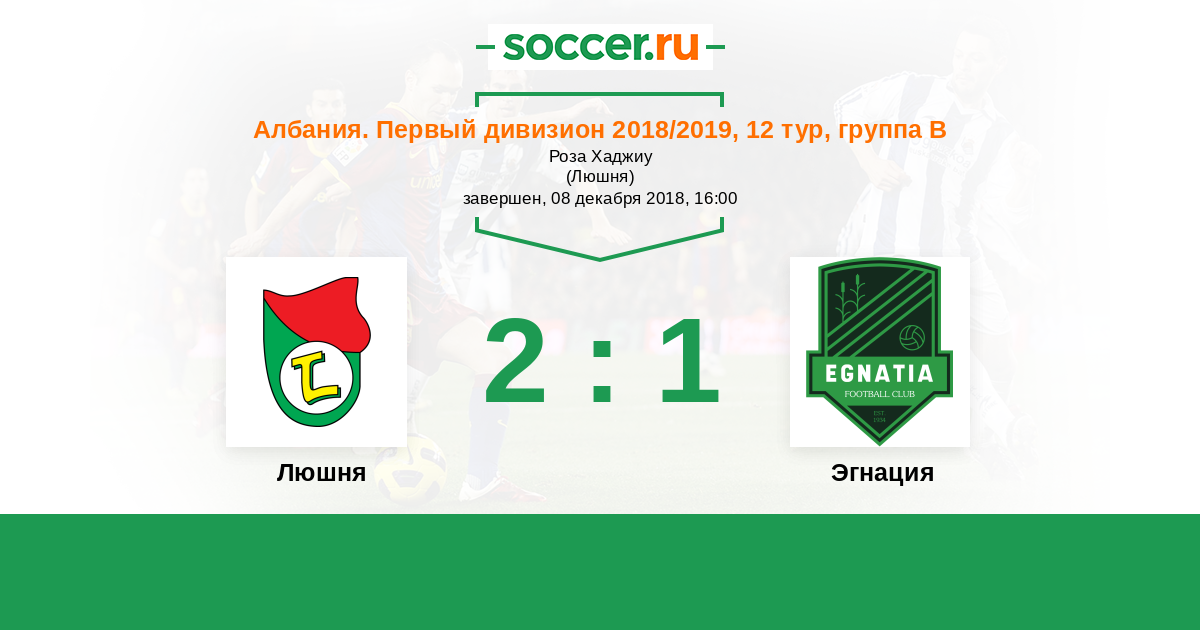 Албания. Первый дивизион 06.04.2019 Люшня Логотип футбольный клуб Люшня 2:2 Логотип футбольный клуб Эгнация (Рогожина) Эгнация