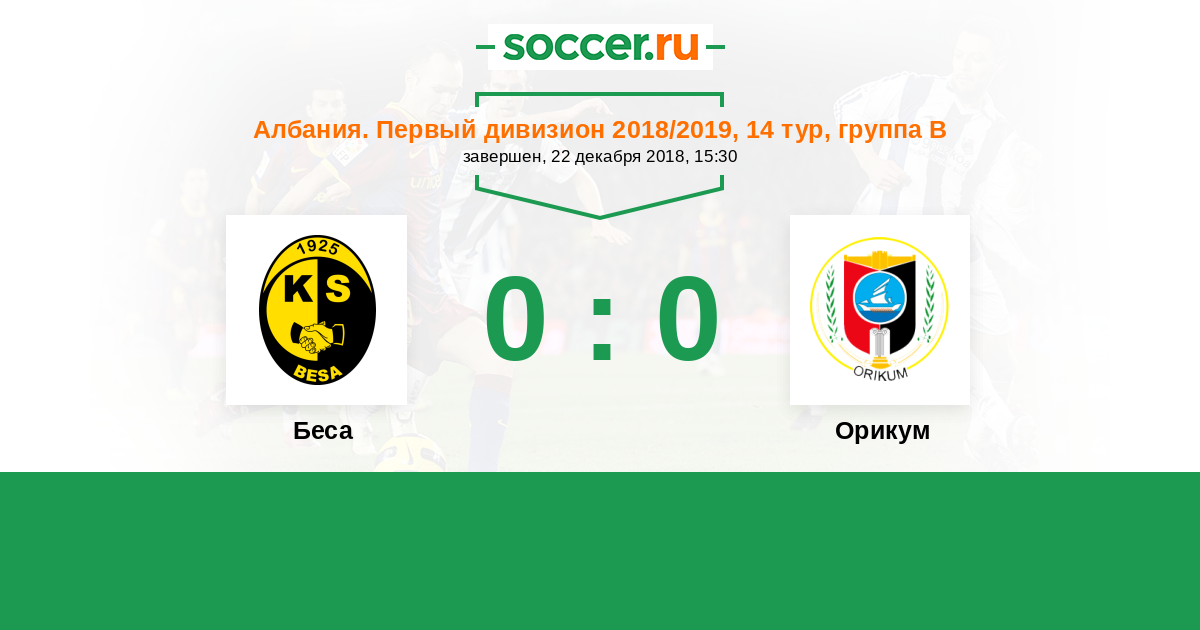 Албания. Первый дивизион 06.04.2019 Орикум Логотип футбольный клуб Орикум 0:1 Логотип футбольный клуб Беса (Кавайе) Беса