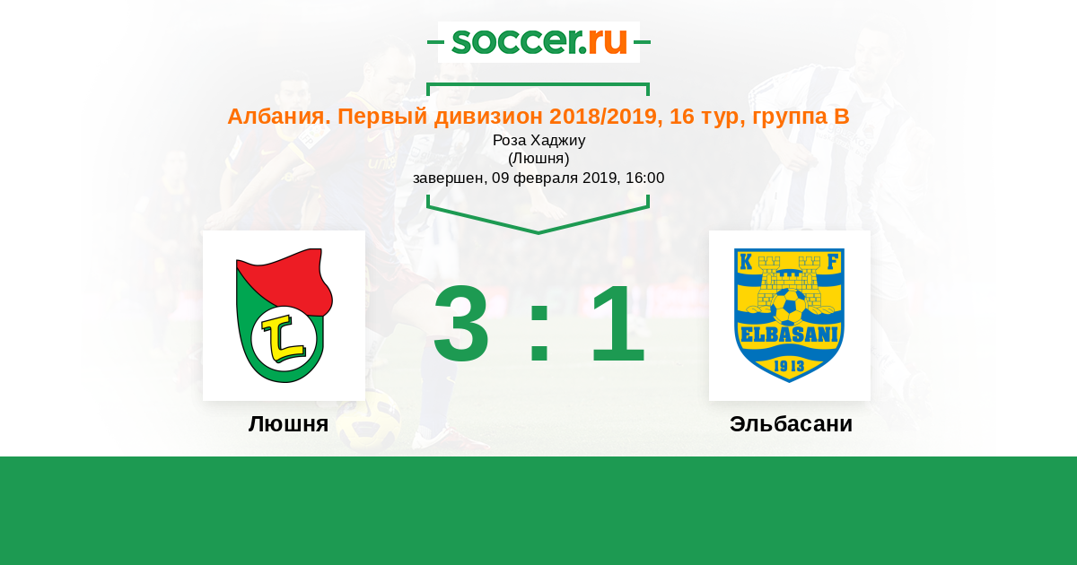 История матча Люшня против Эльбасани