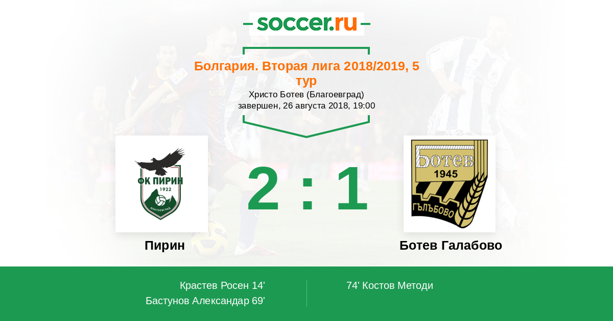 Протокол матча Пирин против Ботев Галабово