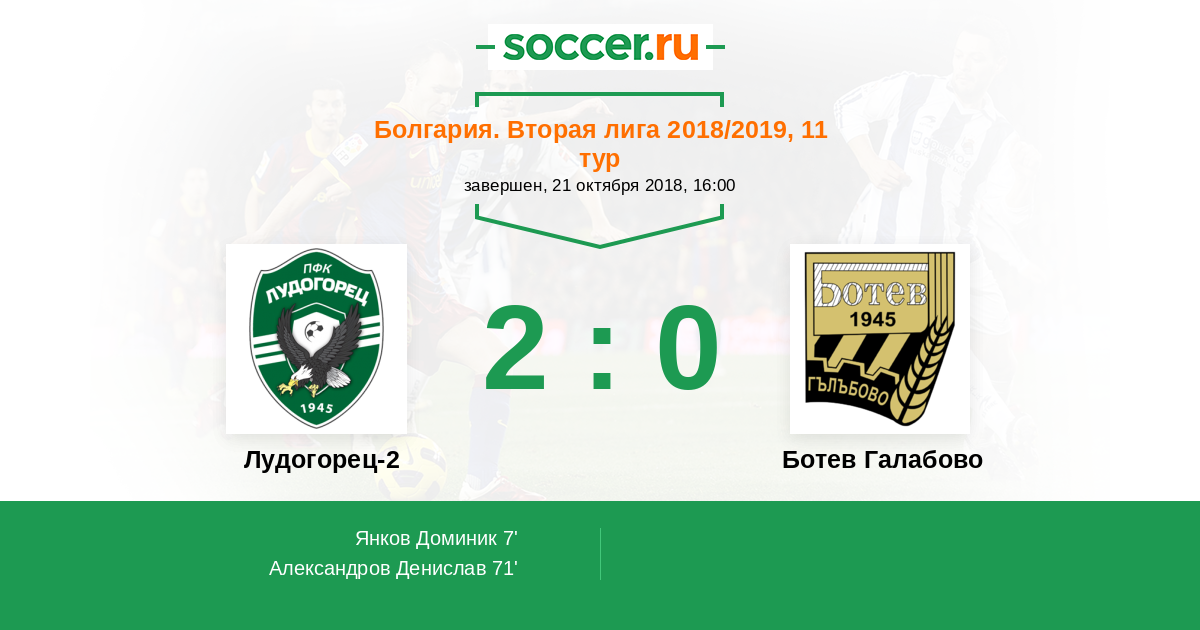 Протокол матча Лудогорец-2 против Ботев Галабово