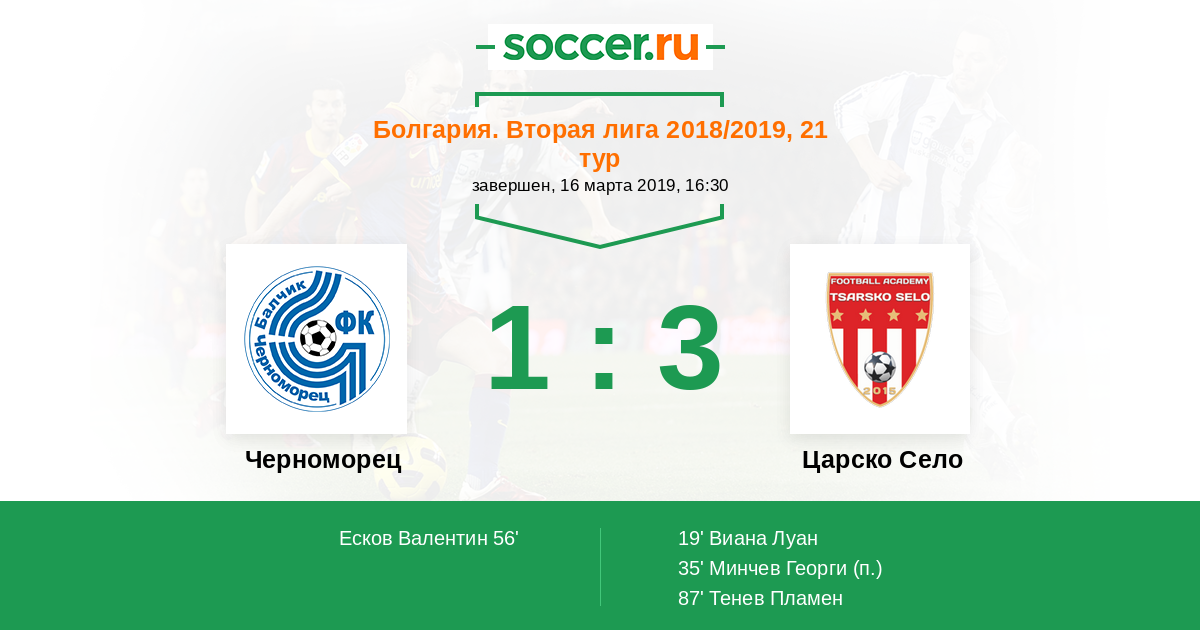 Протокол матча Черноморец против Царско Село