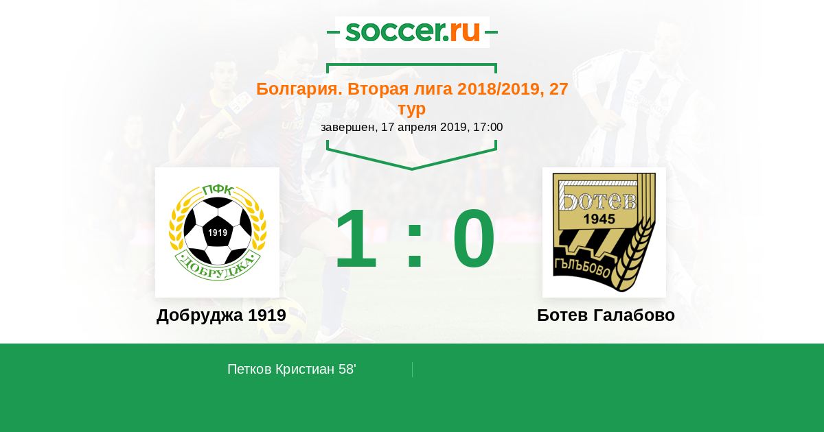 Протокол матча Добруджа 1919 против Ботев Галабово