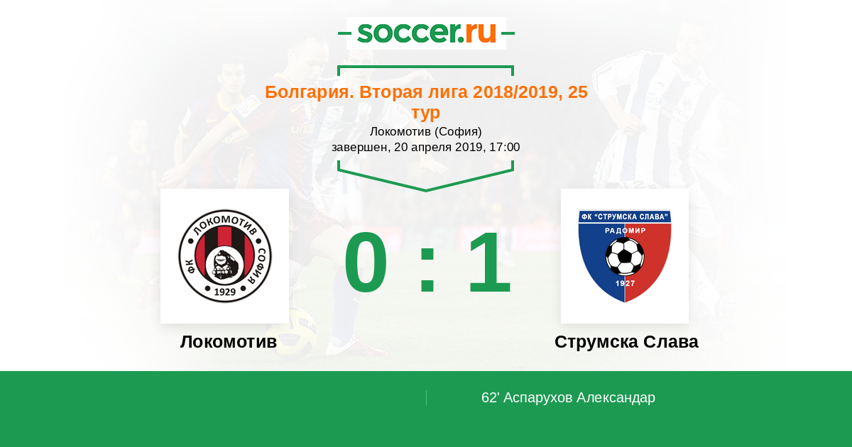 Протокол матча Локомотив против Струмска Слава