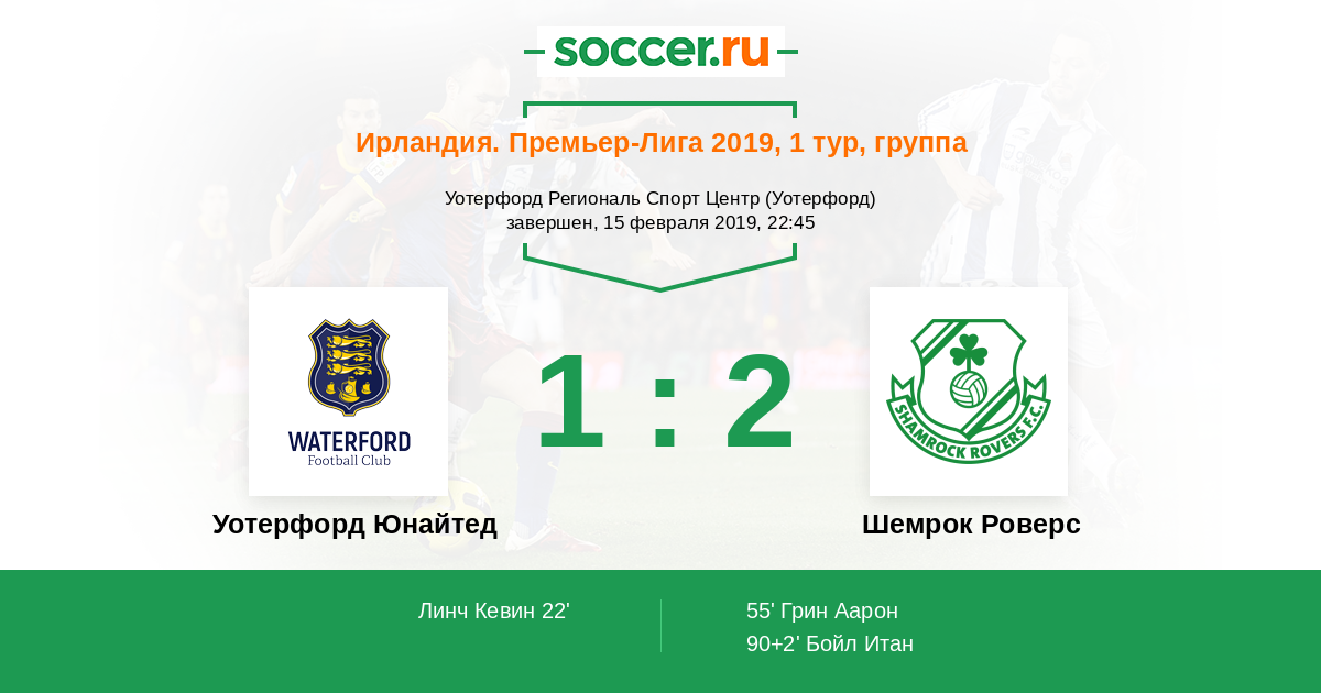 Протокол матча Уотерфорд Юнайтед против Шемрок Роверс