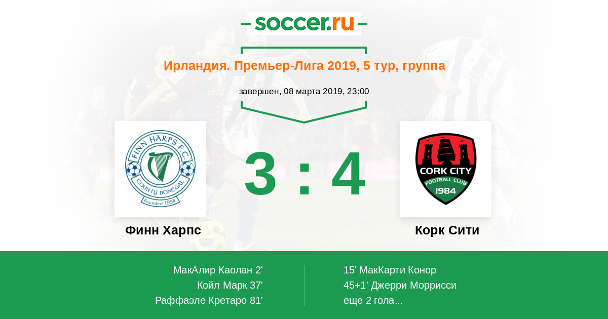 Протокол матча Финн Харпс против Корк Сити
