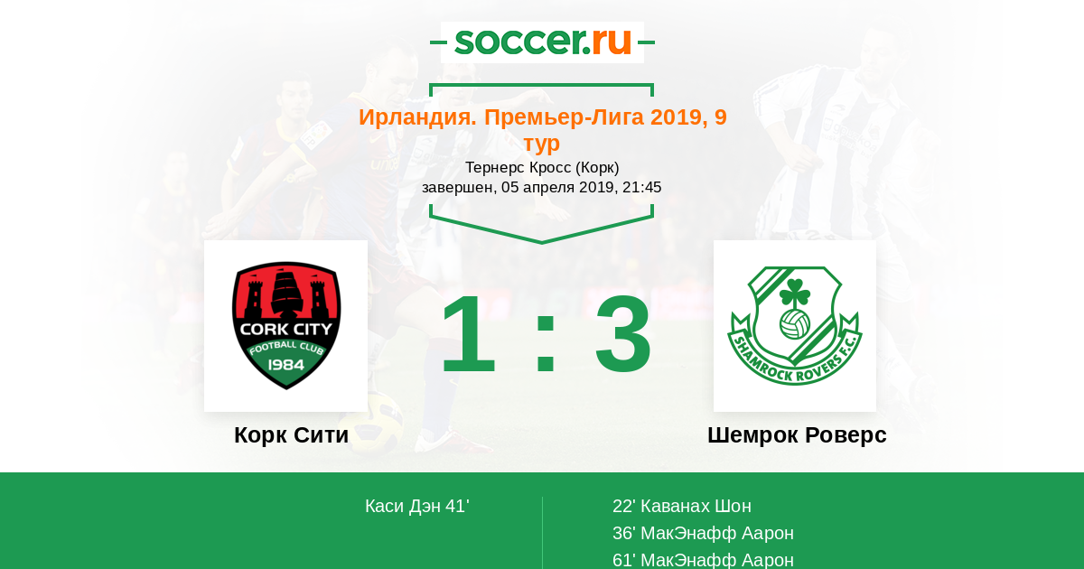 Протокол матча Корк Сити против Шемрок Роверс