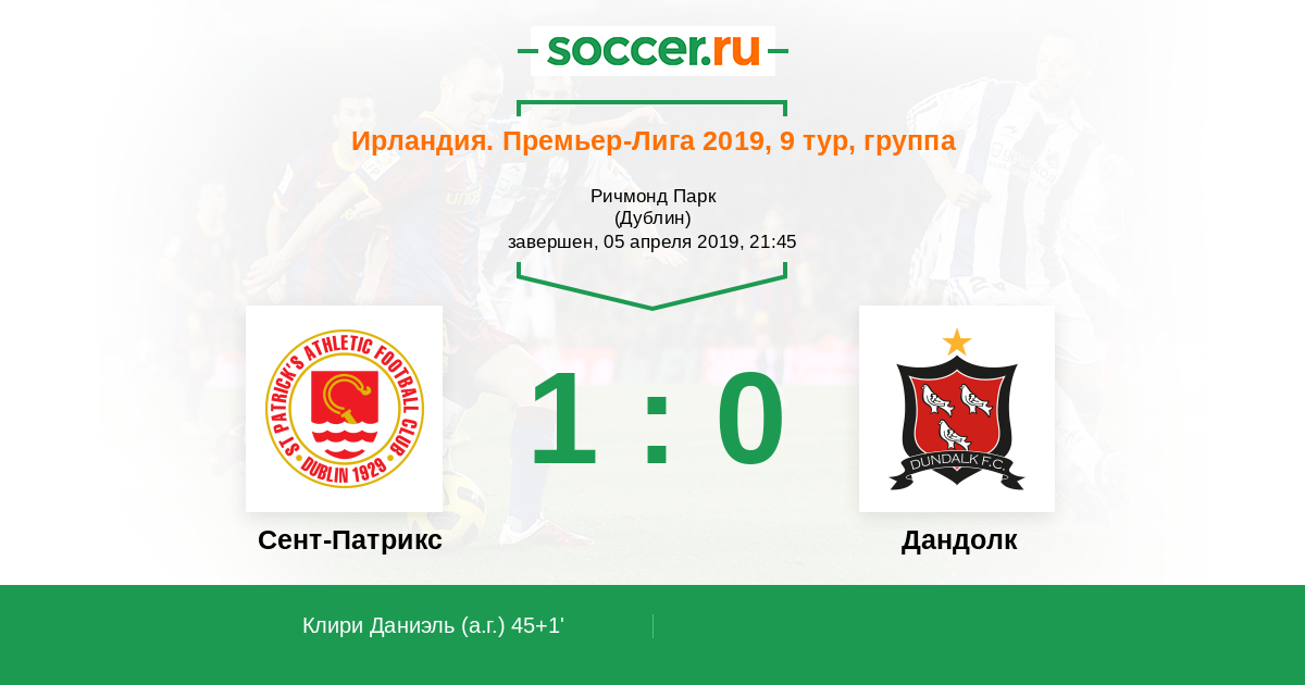 45+1' (1:0) Автогол Клири Даниэль (21)