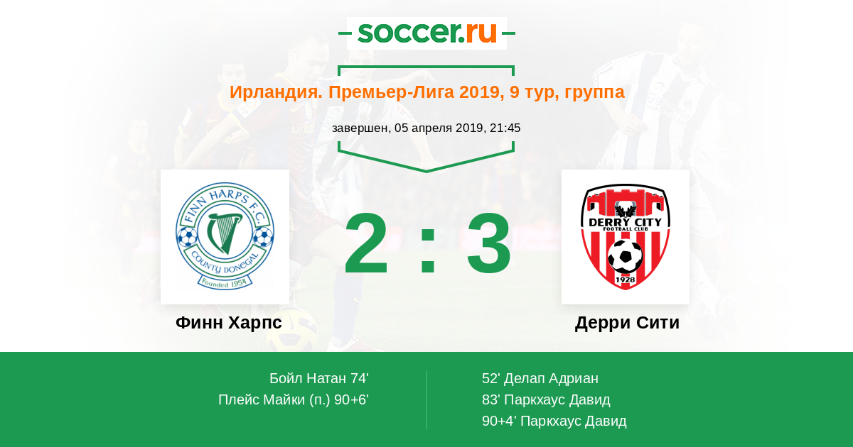Протокол матча Финн Харпс против Дерри Сити