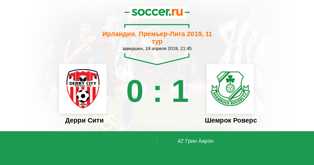 Протокол матча Дерри Сити против Шемрок Роверс
