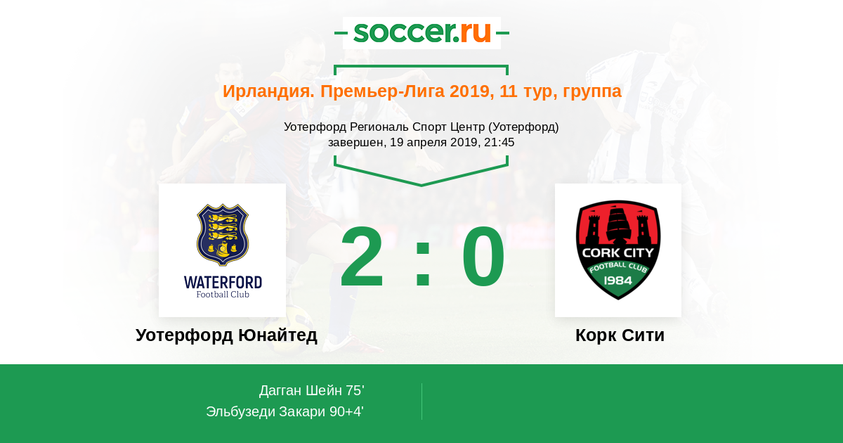Протокол матча Уотерфорд Юнайтед против Корк Сити