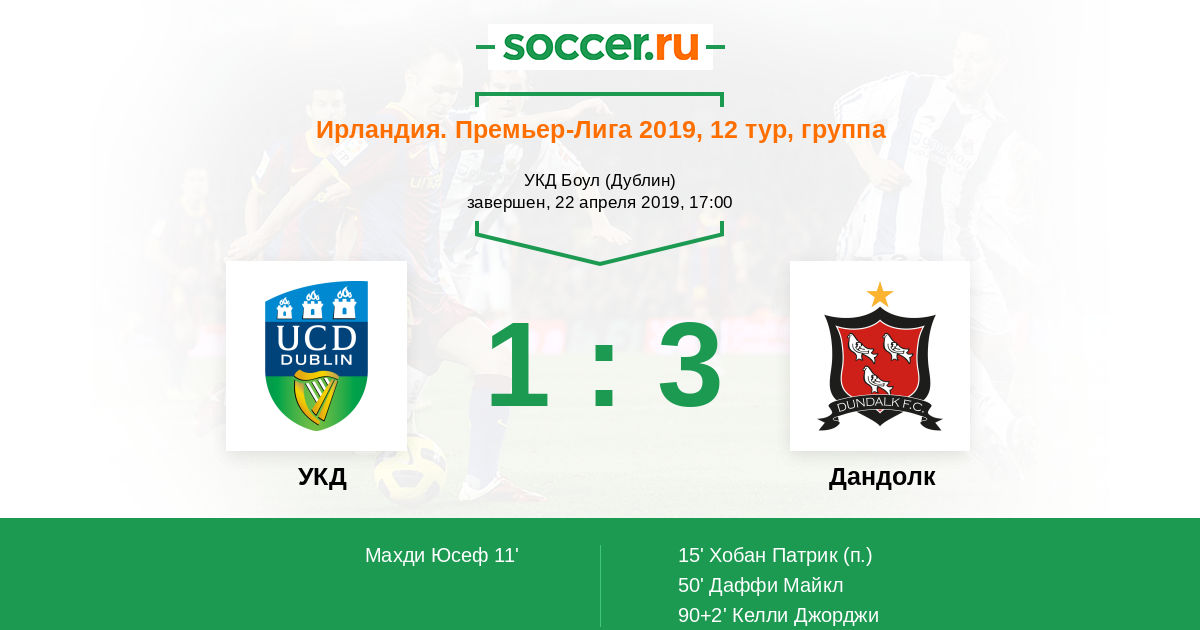 Протокол матча УКД против Дандолк